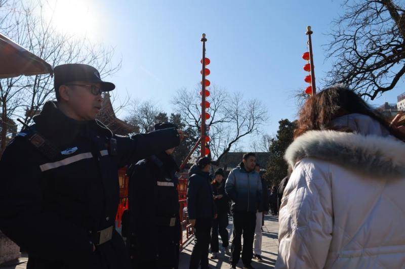 据介绍,针对春节期间辖区各大庙会活动密集、人流高度聚集的特点,朝阳公安提前制定详尽的安保工作方案和应急预案,加强与属地相关部门及庙会主办方沟通对接,督促落实安全主体责任,完善应急预案,配齐安保力量。通过多方协作、齐抓共管,形成了“政府主导、部门联动、社会参与”的大安保格局,明确“万无一失”的工作标准。假期九天中,采取“定点值守+动态巡视+多警种联动”的三位一体防控模式,坚持最大化部署警力。让群众感受到安全感无处不在。